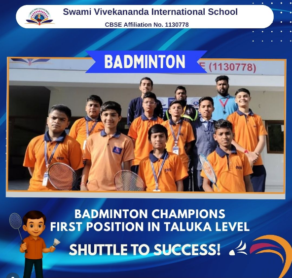 A huge round of applause to our talented players from Swami Vivekananda International School for securing First Position in the Taluka Level Badminton Competition and qualifying for the District Level Championship! Your hard work, dedication, and sportsmanship have brought immense pride to our school. Now, it’s time to smash your way to District Glory!