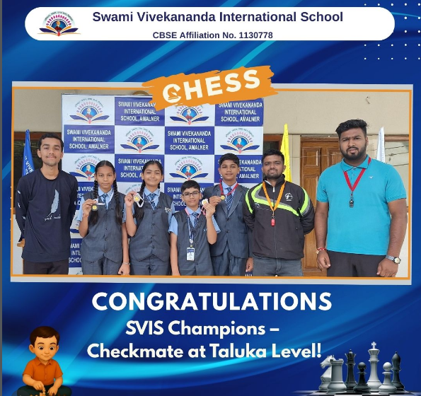 A huge round of applause for our brilliant minds from Swami Vivekananda International School for their stellar performance at the Taluka Level Chess Competition and for advancing to the District Level Tournament! Shamik Pravin Pawar – 2nd Rank (Boys 14-17 yrs) Mansvi Vinod Patil – 2nd Rank (Girls 14-17 yrs) Leena Santosh Patil – 4th